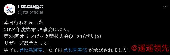 不过,日本乒协在今天公布的最终P卡人选打消了最后一丝猜疑。男子方面是松岛辉空,女子方面是木原美悠。