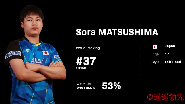 松岛辉空(Sora MATSUSHIMA)现年17岁,左手选手,男单现世界排名第37位,是日本男单目前排名第四的球员;木原美悠(Miyuu KIHARA)现年19岁,右手选手,女单现世界排名第20位,是日本女单目前排名第五的球员。